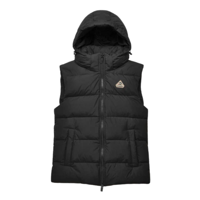 Gilet sans manches avec tissu mini ripstop imperméable (15 000 mm), capuche amovible et garnissage en duvet naturel français (90 % duvet / 10 % plumettes, FP 750). Coupe relax, poches zippées, col montant et cordons ajustables pour protéger du vent – idéale entre +10 °C et –5 °C.
