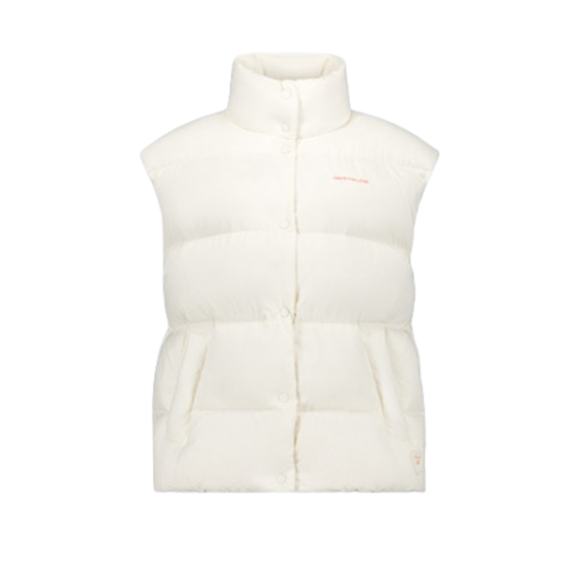 Confectionnée en nylon recyclé au toucher fin, elle offre une sensation de douceur tout en s’inscrivant dans une démarche plus responsable. Grâce à ses liens de serrage internes, la taille peut être modulée selon l’envie, pour un look structuré ou plus décontracté. Idéale à superposer sans alourdir la silhouette.