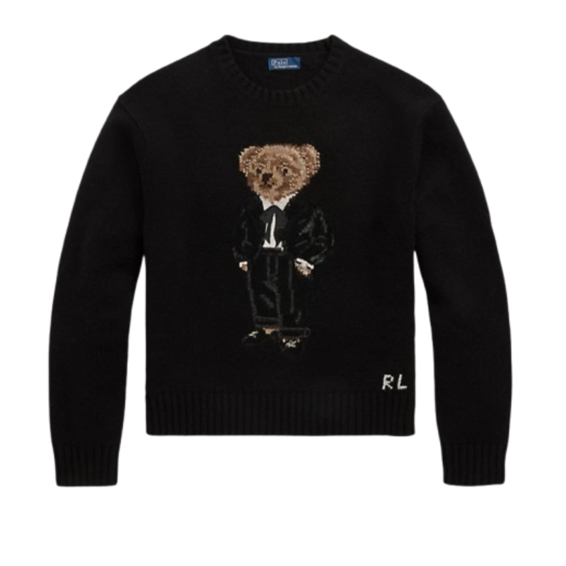 Tricoté dans un mélange de laine italienne avec une touche de cachemire, ce pull à col rond arbore un motif en tricot intarsia du Polo Bear vêtu d'un smoking Ralph Lauren distinctif.