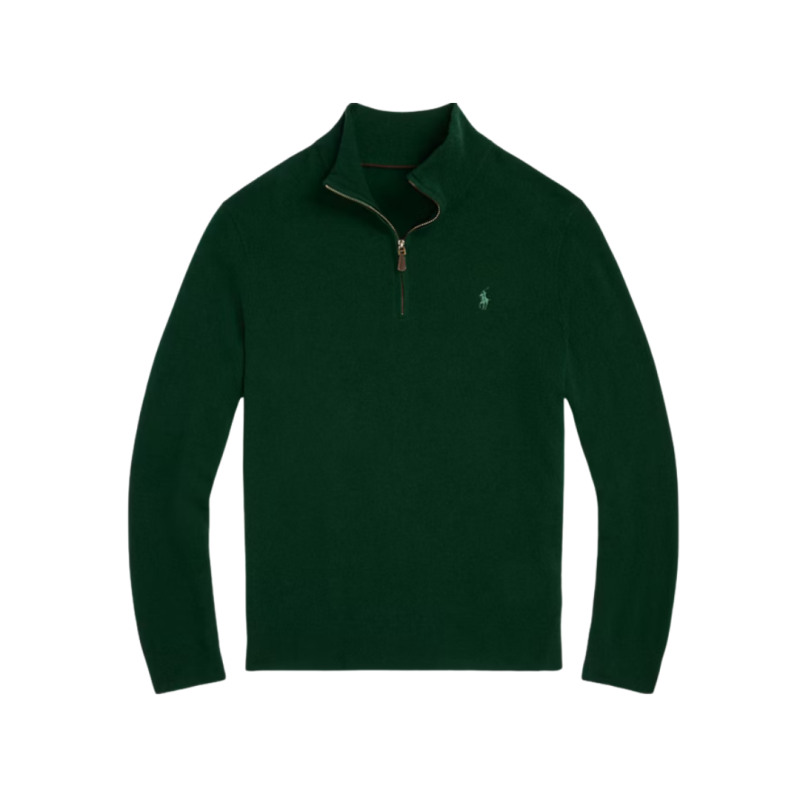 Allie élégance et confort avec ce pull demi-zippé en laine 100 %. Doté d’un col cheminée côtelé avec zip à la base, il permet de moduler l’allure selon l’humeur : col remonté pour une touche sophistiquée, ouvert pour un style plus casual. On retrouve le cavalier brodé sur la poitrine, discrètement emblématique. Coupe droite, finitions côtelées aux poignets et à l’ourlet.