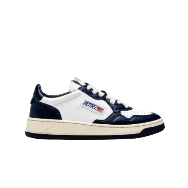 Coloris : Blanc et bleu marine, à l’esprit vintage sportif