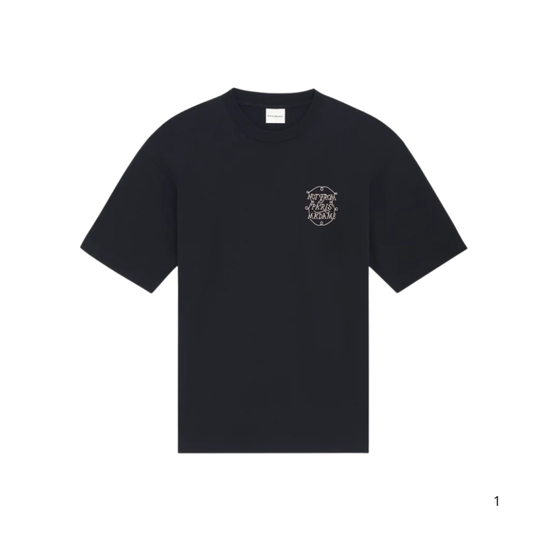Ce t-shirt Drôle de Monsieur met en avant le slogan iconique "Not From Paris Madame" revisité dans une version brodée façon tressage, à la fois à l’avant et en grand format dans le dos. Conçu en coton doux, il assure confort et style avec sa coupe droite et son design minimaliste.