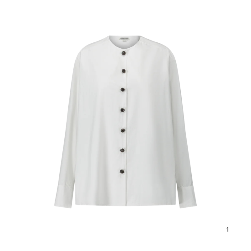 Chemise en popeline de coton à coupe droite, sublimée par des boutons bijoux raffinés. Un essentiel élégant et facile à associer.
